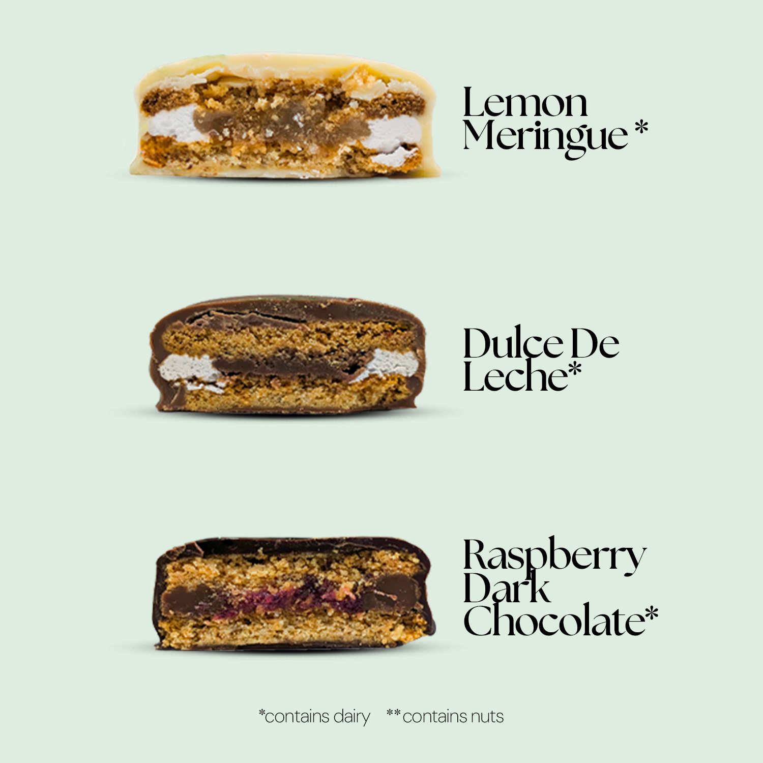 Indulge in our box of 6 handcrafted, 2" gourmet Mallomars made with gluten-free shortbread and premium ingredients.